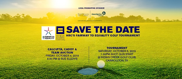Join the Human Rights Campaign for the 24th Fairway to Equality Golf Tournament in Dallas/Ft.Worth. Your ticket includes: golf bag valet (delivery from car to golf cart), golf, post tournament meal, and gift bag.